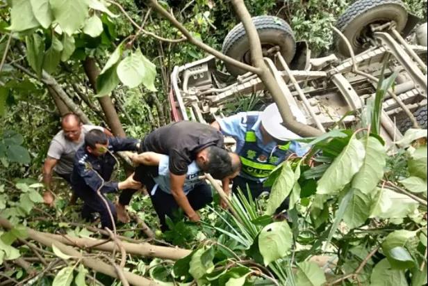 08月07日16時,一輛重型罐式貨車在云南省昭通市永善縣蓮峰鎮(zhèn)文潭村毛拱橋路段一急彎處,與對向行駛的一輛重型罐式貨車會車時,右后輪駛出路面,車輛翻到30余米的深谷。 接到出警指令后,蓮峰鎮(zhèn)派出所所長郝正德、交警中隊長馬宏率民警輔警共12人趕赴文譚村交通事故現(xiàn)場,隨即聯(lián)系蓮峰鎮(zhèn)衛(wèi)生院派出救護車和醫(yī)務(wù)人員趕往救助。 當民警趕到現(xiàn)場時,發(fā)現(xiàn)山谷十分陡峭,谷深約30米,駕駛員被困在嚴重變形的駕駛室,不知生死。因車輛離谷底還有五六米距離,駕駛室被懸在空中無著力點。郝所長急中生智,安排救援人員攀著樹枝進入駕駛室,里面只有駕駛員1人,已經(jīng)昏迷不醒,但還有呼吸。 這時候,路過的數(shù)名駕乘人員也參加到救援隊伍,迅速形成了一支20多人的救援隊伍。駕駛員被小心翼翼移除駕駛室后,郝所長將他背在肩上。救援隊伍攀著樹枝、野草、巖石等,你拉我扶,以背著傷者的郝所長為核心著力點,在懸崖峭壁慢慢往上攀爬。天氣炎熱,汗水濕透了他們的衣服。 經(jīng)過40分鐘努力,傷者被成功救上了公路,由急救的醫(yī)療人員緊急處理后,直接將送往昭通市第一人民醫(yī)院救治。 經(jīng)查,駕駛員高某欣駕駛重型罐式貨車滿載水泥,從蓮峰鎮(zhèn)向大興鎮(zhèn)方向行駛,當車行至蓮峰鎮(zhèn)文譚村毛拱橋急彎路段,突遇對向駛來一輛重型罐式貨車,因山區(qū)彎道,路面狹窄,高某欣在會車過程中,右后輪駛出路面,車輛翻下30米深谷。幸運的是,在事故中駕駛員高某欣只是被震暈,傷情不重,經(jīng)醫(yī)院搶救,目前已脫離生命危險。