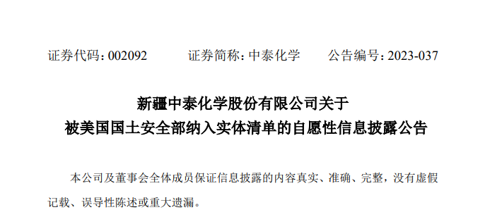 近日,美國(guó)國(guó)土安全部宣布禁止從中國(guó)打印機(jī)制造商納思達(dá)和新疆中泰化學(xué)進(jìn)口產(chǎn)品,而理由則是這些企業(yè)涉及所謂“強(qiáng)迫勞動(dòng)”。 據(jù)美國(guó)國(guó)土安全部當(dāng)?shù)貢r(shí)間9日在其網(wǎng)站上發(fā)布的消息,上述兩家中企被新列入所謂“維吾爾強(qiáng)迫勞動(dòng)預(yù)防法”的實(shí)體名單中,這些企業(yè)及其子公司生產(chǎn)的商品將被限制進(jìn)入美國(guó)。2022年6月21日,美國(guó)實(shí)施所謂“維吾爾強(qiáng)迫勞動(dòng)預(yù)防法”,現(xiàn)在有22家企業(yè)被列入禁止進(jìn)口的名單中,而中方此前多次否認(rèn)美方關(guān)于所謂“強(qiáng)制勞動(dòng)”的指控。 6月12日晚間,中泰化學(xué)發(fā)布關(guān)于被美國(guó)國(guó)土安全部納入實(shí)體清單的自愿性信息披露公告。 公告表示,2023年6月10日,新疆中泰化學(xué)股份有限公司獲知美國(guó)國(guó)土安全部將公司列入“維吾爾強(qiáng)迫勞動(dòng)預(yù)防法”的實(shí)體名單中,公司2022年實(shí)現(xiàn)營(yíng)業(yè)收入559.11億元,其中國(guó)內(nèi)收入占比93.37%,出口收入占比6.63%,此次被列入實(shí)體名單不會(huì)對(duì)公司的生產(chǎn)經(jīng)營(yíng)造成重大影響。目前,公司正在全面評(píng)估此事件對(duì)公司造成的潛在影響,并將積極與相關(guān)部門(mén)溝通,做好應(yīng)對(duì)工作。 中泰化學(xué)簡(jiǎn)介 新疆中泰化學(xué)股份有限公司是新疆維吾爾自治區(qū)重點(diǎn)支持的優(yōu)勢(shì)資源轉(zhuǎn)換企業(yè),于2001年12月18日成立,2006年12月8日在深圳證券交易所上市,企業(yè)前身是1958年建廠的新疆燒堿廠。 中泰化學(xué)依托新疆地區(qū)豐富的煤炭、原鹽、石灰石等自然資源,通過(guò)不斷優(yōu)化管理理念和完善產(chǎn)業(yè)生態(tài)圈,發(fā)展成為擁有氯堿化工和粘膠紡織產(chǎn)業(yè)兩大主業(yè)的優(yōu)勢(shì)企業(yè),主營(yíng)聚氯乙烯樹(shù)脂(PVC)、離子膜燒堿、粘膠纖維、粘膠紗四大產(chǎn)品,配套熱電、蘭炭、電石、電石渣制水泥、棉漿粕等循環(huán)經(jīng)濟(jì)產(chǎn)業(yè)鏈,主營(yíng)產(chǎn)品的生產(chǎn)能力為年產(chǎn)205萬(wàn)噸聚氯乙烯樹(shù)脂、146萬(wàn)噸離子膜燒堿、88萬(wàn)噸粘膠纖維、320萬(wàn)錠粘膠紗。 作為氯堿行業(yè)龍頭企業(yè),中泰化學(xué)延伸粘膠、紡織產(chǎn)業(yè),上下游相互配套,構(gòu)建一體化生產(chǎn)體系,提高公司整體競(jìng)爭(zhēng)力。 根據(jù)中泰化學(xué)2022年年報(bào)顯示,其粘膠纖維主要出口巴西、印度、土耳其等國(guó)家,粘膠紗主要出口新加坡、印度、馬來(lái)西亞、土耳其、巴西等國(guó)家。 美國(guó)打著人權(quán)幌子 另?yè)?jù)商務(wù)部6月12日網(wǎng)站消息,商務(wù)部新聞發(fā)言人就美國(guó)將2家中國(guó)企業(yè)列入所謂“維吾爾強(qiáng)迫勞動(dòng)預(yù)防法實(shí)體清單”答記者問(wèn)時(shí)表示,美方借“人權(quán)”之名,行單邊霸凌之實(shí),是典型的經(jīng)濟(jì)脅迫行為。中方對(duì)此堅(jiān)決反對(duì)。 發(fā)言人還強(qiáng)調(diào),新疆根本不存在所謂“強(qiáng)迫勞動(dòng)”、“迫害少數(shù)民族”。美方應(yīng)立即停止政治操弄和抹黑攻擊,停止無(wú)理打壓中國(guó)企業(yè),停止破壞新疆繁榮穩(wěn)定。中方將采取必要措施,堅(jiān)決維護(hù)中國(guó)企業(yè)合法權(quán)益,維護(hù)國(guó)家主權(quán)安全和發(fā)展利益。 2022年6月24日,新疆維吾爾自治區(qū)人民政府新聞發(fā)言人徐貴相在第76場(chǎng)新疆維吾爾自治區(qū)專題新聞發(fā)布會(huì)上表示,美國(guó)海關(guān)和邊境保護(hù)局依據(jù)所謂的“維吾爾強(qiáng)迫勞動(dòng)預(yù)防法”,將中國(guó)新疆地區(qū)生產(chǎn)的全部產(chǎn)品均推定為所謂“強(qiáng)迫勞動(dòng)”產(chǎn)品,并禁止進(jìn)口與新疆相關(guān)的任何產(chǎn)品,這是美方打著人權(quán)幌子對(duì)華進(jìn)行遏制打壓的升級(jí),“美方有關(guān)行徑嚴(yán)重?fù)p害中美兩國(guó)企業(yè)和消費(fèi)者切身利益,嚴(yán)重破壞國(guó)際經(jīng)貿(mào)規(guī)則和國(guó)際產(chǎn)業(yè)鏈供應(yīng)鏈穩(wěn)定,嚴(yán)重違反國(guó)際法和國(guó)際關(guān)系基本準(zhǔn)則,充分暴露出美國(guó)打著人權(quán)旗號(hào)破壞人權(quán)、打著規(guī)則的旗號(hào)破壞規(guī)則的霸權(quán)實(shí)質(zhì)。我們對(duì)此予以強(qiáng)烈譴責(zé)和堅(jiān)決反對(duì)!所謂新疆存在‘強(qiáng)迫勞動(dòng)’完全是美西方反華勢(shì)力編制的彌天大謊,是徹頭徹尾的世紀(jì)謊言。中國(guó)新疆根本就不存在所謂的‘強(qiáng)迫勞動(dòng)’問(wèn)題”。 PVC反傾銷 美國(guó)是全球PVC第一大出口國(guó)家。值得注意的是,2020年8月18日,中國(guó)商務(wù)部收到新疆中泰化學(xué)股份有限公司、新疆天業(yè)(集團(tuán))有限公司、陜西北元化工集團(tuán)股份有限公司、天津大沽化工股份有限公司和宜賓天原集團(tuán)股份有限公司代表國(guó)內(nèi)聚氯乙烯產(chǎn)業(yè)正式提交的反傾銷調(diào)查申請(qǐng),申請(qǐng)人請(qǐng)求對(duì)原產(chǎn)于美國(guó)的進(jìn)口聚氯乙烯進(jìn)行反傾銷調(diào)查。 根據(jù)審查結(jié)果,商務(wù)
