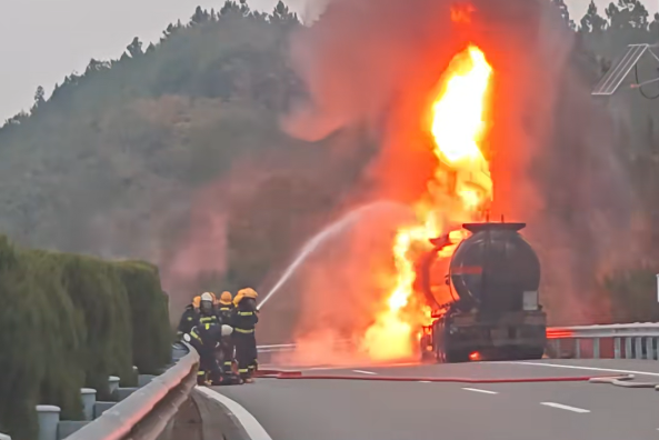 近日,江西上萬高速陳營鎮(zhèn)柳樹村段(上饒往南昌方向),一輛裝載30多噸31%濃度鹽酸的;愤\(yùn)輸車突發(fā)大火,高溫炙烤下的鹽酸罐體隨時(shí)可能泄漏,后果不堪設(shè)想。 消防救援人員迅速趕到現(xiàn)場,槽罐車車頭及輪胎火勢明顯,滾滾黑煙飄向半空。鹽酸具腐蝕性,處置不當(dāng)易引發(fā)泄漏次生災(zāi)害。消防救援人員立即架設(shè)水槍,分別朝車尾及左右兩側(cè)起火部位噴射,壓制火勢。經(jīng)過近30分鐘的全力撲救,明火被成功撲滅。從火勢控制到罐體檢查,從鹽酸倒運(yùn)到車輛清障,救援人員連續(xù)奮戰(zhàn)5個(gè)多小時(shí)。當(dāng)晚22時(shí)20分,30噸鹽酸全部安全倒罐,罐體隱患徹底消除。隨后,受損車輛被快速拖離,路面清障同步完成。此次火災(zāi)未造成人員傷亡,具體原因正在進(jìn)一步調(diào)查中。。